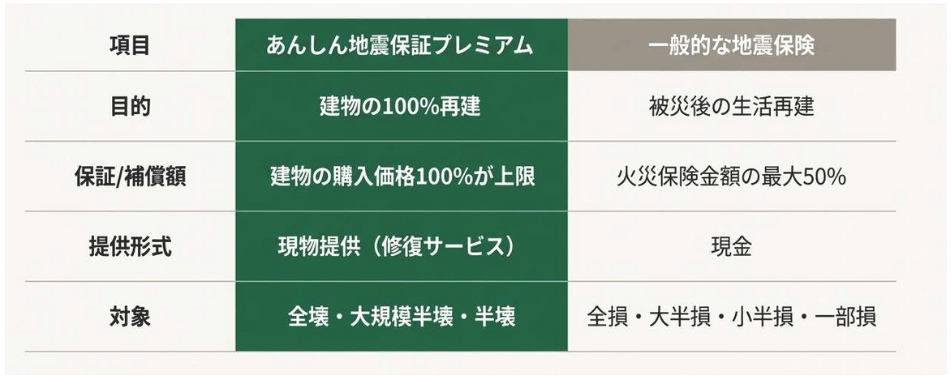 「一般的な地震保証」の主な違い
