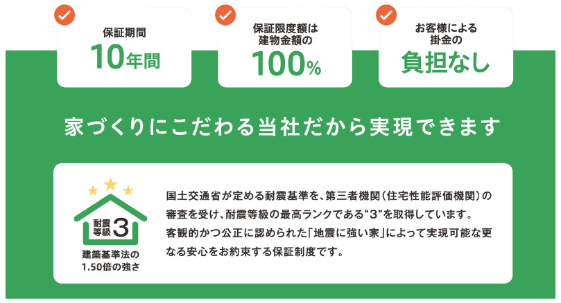 4つの長期品質保証と地震保証が